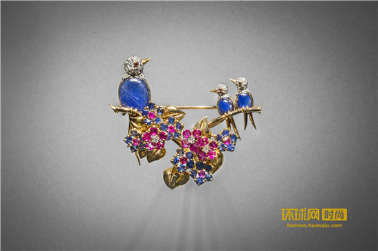 世家还在多款以鸟和花朵为主题的胸针设计中采用了绿松石和钻石的搭配。60年代进入尾声,1967年,世家接受委托为伊朗王后法拉赫•巴列维(Farah Pahlavi)打造加冕皇冠,同时为伊朗王室公主们创作珠宝套装。
