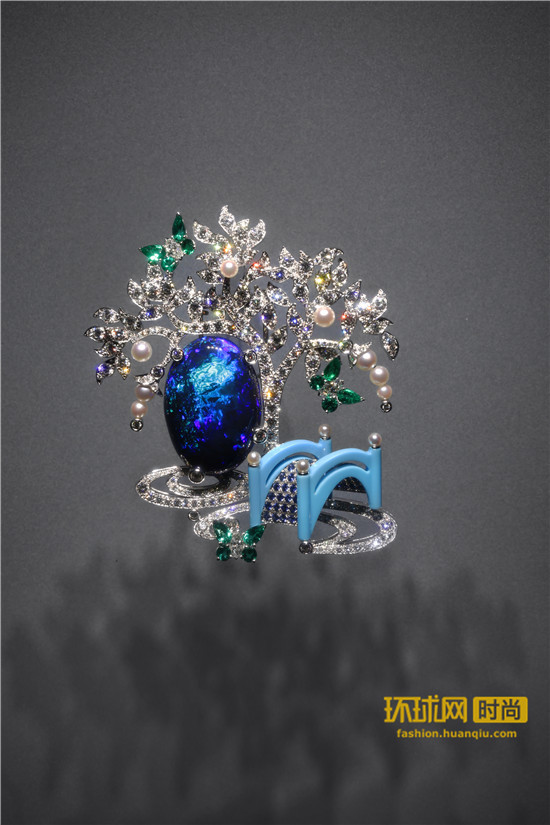 棱角分明的钻石、蓝宝石、尖晶石、绿玉髓、黄晶和碧玺频频与非对称凸圆型切割宝石搭配,呈现强烈的碰撞之美。
