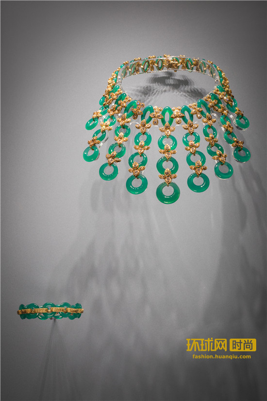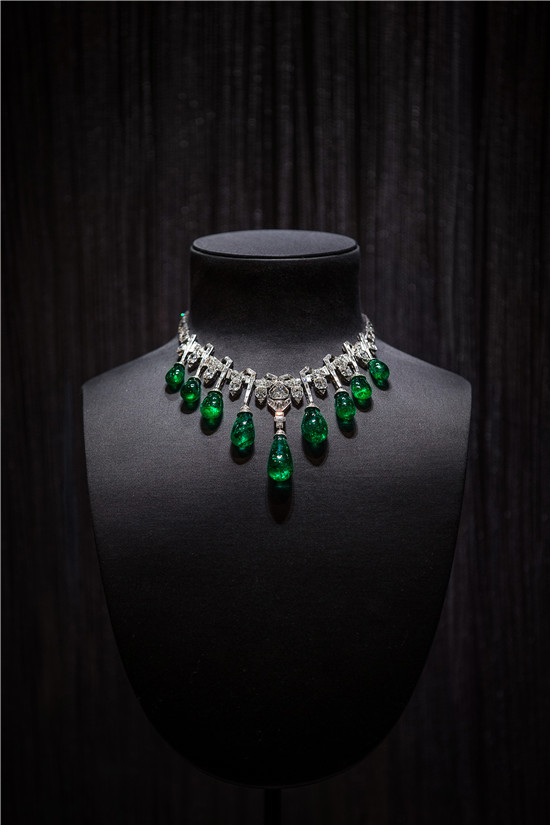 这款装饰艺术风格的项圈诞生于1929年,镶嵌十颗品质卓越的水滴状祖母绿(总重165克拉)以及采用多种切割工艺和形态万分的钻石,极为亮眼夺目。1937年,该项圈成为埃及法伊莎公主殿下的珍藏,作为典型的“皇家珠宝”,这款夺目的项圈成为法伊莎公主当时出席特殊场合的首选配饰。